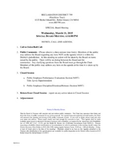 Special Board Meeting at 6:00 pm